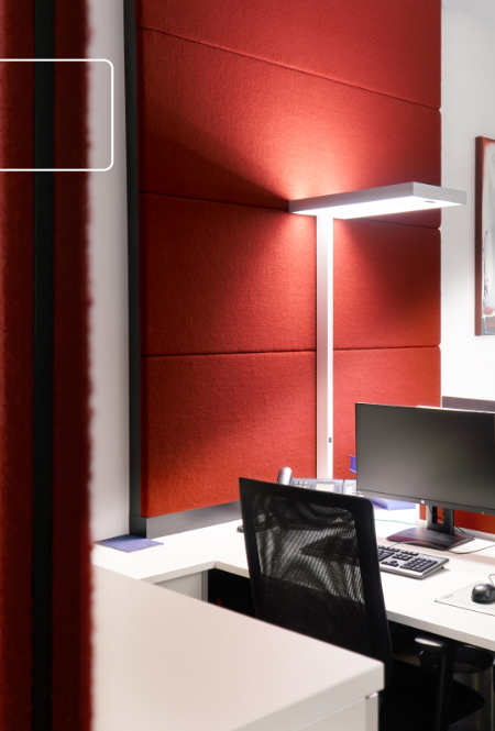 Die Akustik-Module lassen sich Dank der praktischen Wandmontageleisten immer wieder neu arrangieren.